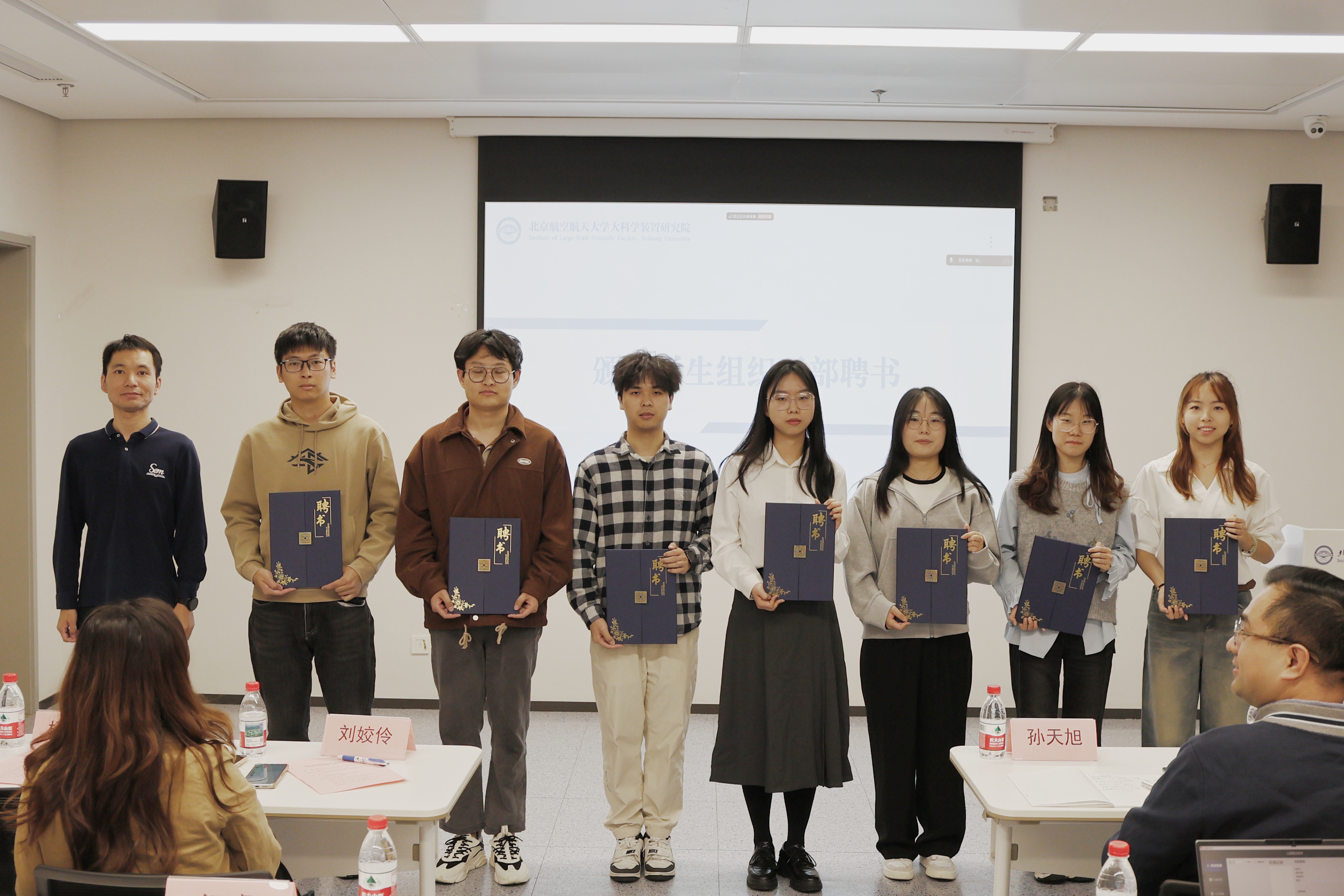 在聘任环节,学院老师分别为研究生会、学生媒体中心、学生心理健康中心的新一届学生骨干颁发聘书,鼓励全体学生骨干积极投身到各项学生工作中,为打造大科学装置研究院的“高效学工”、“品牌文化”、“阳光心理”与“立体宣传”格局贡献青春力量。